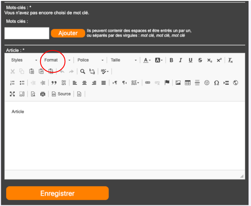 Les titres des sections ne sont pas numérotés. Veuillez utiliser le menu « FORMAT » de l’éditeur pour mettre en style vos titres :